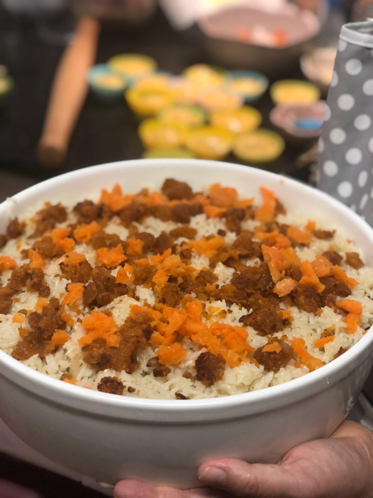Mais um fim de semana alucinante. E mais uma semana de loucos que começa! Até dia 17 o ritmo não vai abrandar.... Só depois posso tirar o pé do acelerador e começar a empenhar-me mais a sério nos meus cabazes de Natal. Quando faltar uma semana para o Natal!Vale-me que já comprei todos os presentes, e que já embrulhei alguns! Que as receitas dos cabazes estão escolhidas, e depois é preparar tudo com amor e carinho.Entretanto continuam a sair muitas coisas desta cozinha! Como este arroz.Das coisas simples e que alimentam muitas pessoas. São estas receitas que me fazem lembrar o natal. Pessoas à mesa e partilha.
