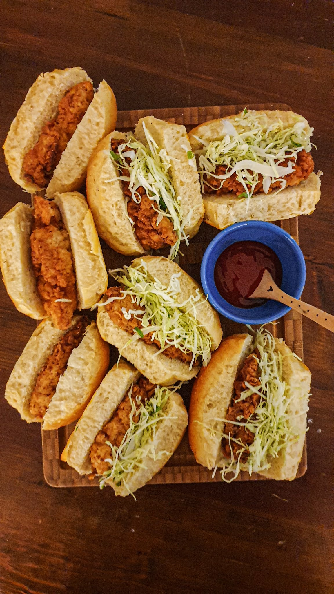 ?Buns? com Frango Frito, Salada de Couve e Molho Sweet Chilli