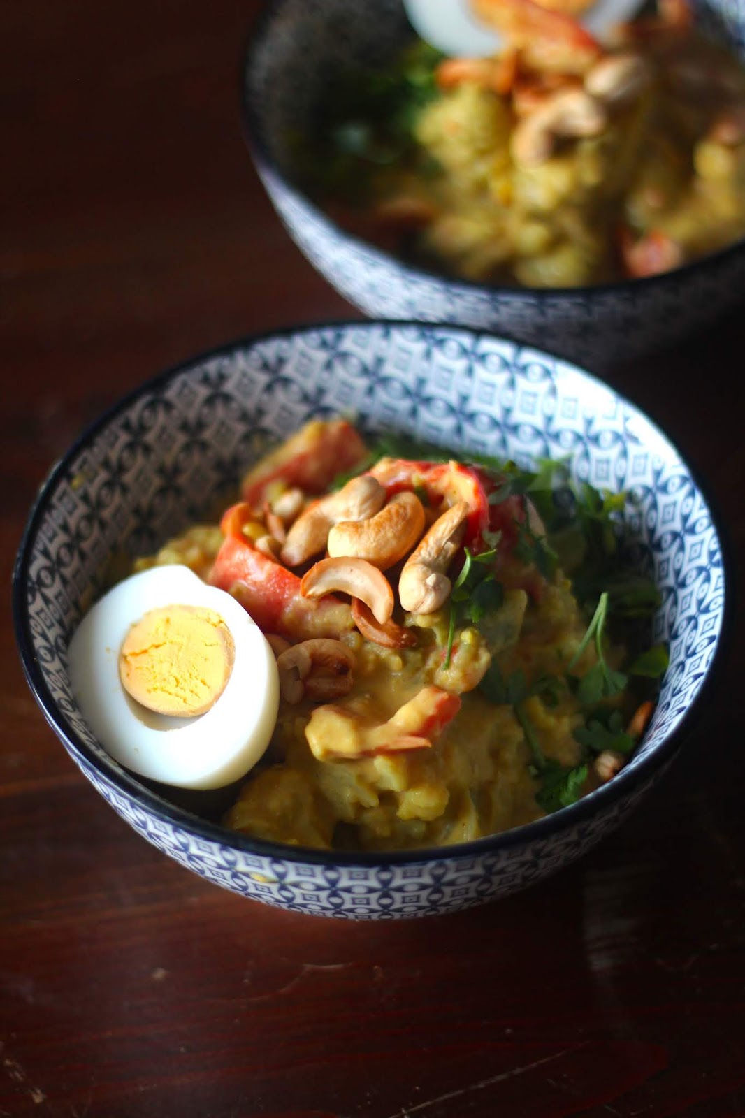 Caril de Romanesno, Couve flor e Pimento Vermelho com Caju