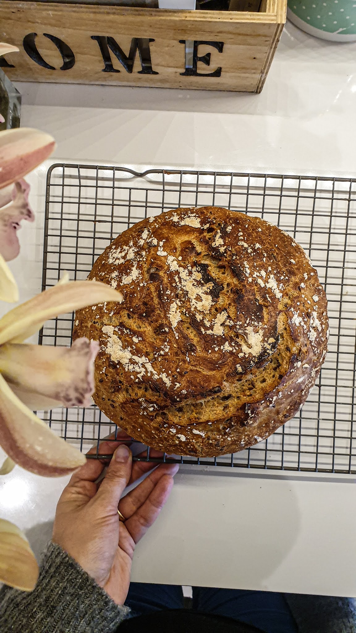 Há mais ou menos 1 ano que compro a farinha das Moagens Carlos Valente, moídas em mó de pedra, e de forma artesanal, para fazer o pão caseiro (e algumas outras coisas). Uma farinha maravilhosa, que faz um pão fantástico - e outras coisas tabém, mas que é também preciso aprender a trabalhar, por tem uma margem mais grossa do que a que estamos habituados, e é mais ?integral? também.Andava também com bastante vontade de experimentar uma variedade ancestral de trigo, o trigo barbela, que eles também têm, e entretanto comprei um pacote para experimentar.Adaptei a receita de pão que faço habitualmente a esta variedade de trigo, e foi mais um pão aprovado e que comemos num instante!