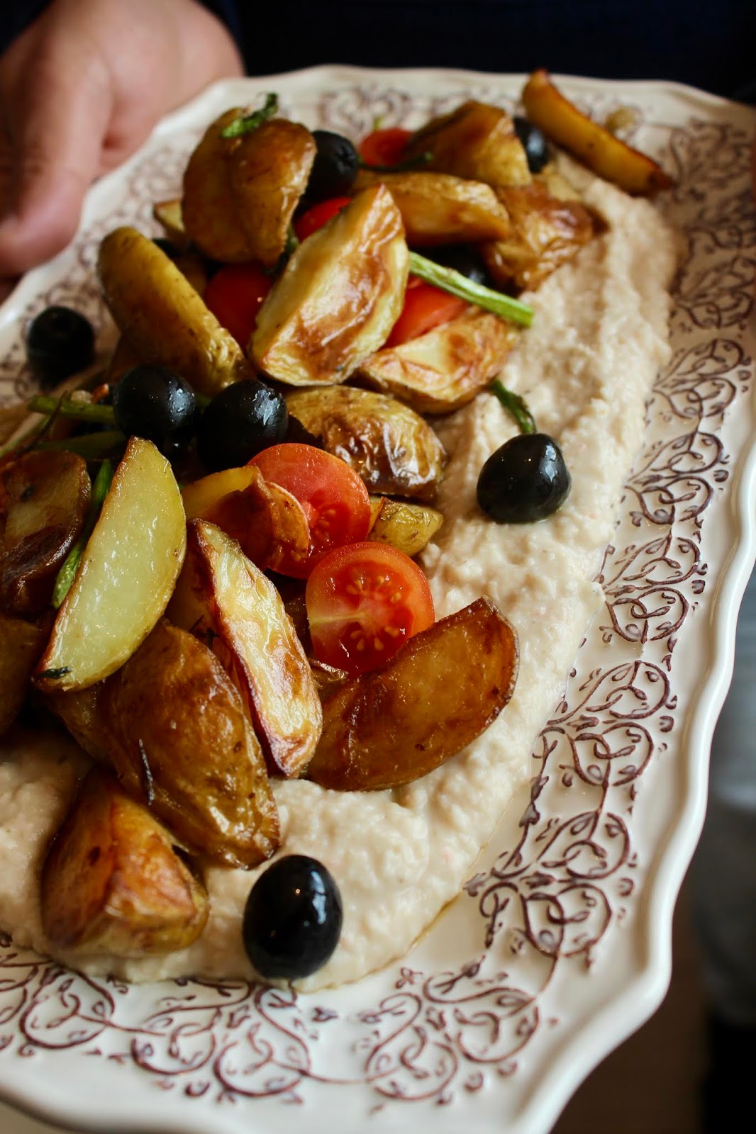 Recomeçar uma semana e a nova normalidade com uma receita sem carne nem peixe, inspirada por uma receita que vi pelo instagram. Tinha feijão branco cozido e congelado. espargos do jardim e batatinhas novas que tinham vindo no cabaz.O puré de feijão ficou delicioso, e deve acompanhar lindamente frango ou outra carne de sabor mais suave. Mas contrasta lindamente com as batatas assadas e com o tomate e espargos. Para quem sinta a falta de mais substância, juntar um ovo escalfado ainda de gema mole parece-me perfeito!