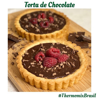 Modo de preparo:1. Para a massa, coloque no copo o açúcar e triture 10 seg/Vel 10. Baixe o que ficou na lateral do copo,adicione os demais ingredientes e misture 20 seg/Vel 5. Tire a massa do copo e forme uma bola.2. Selecione a forma que irá usar, sempre com fundo removível: 1 forma de 24cm diâmetro ou 6forminhas de 7cm.3. Sobre uma bancada e entre dois plásticos, abra a massa com ajuda de um rolo. O tamanho deve sermaior do que o fundo da forma selecionada e com espessura em torno de 0,5 cm. Retire o plástico decima, e com ajuda do plástico de baixo, acomode a massa dentro da forma. Ajuste a massa na base enas laterais. Caso quebre, basta unir novamente pois a massa é moldável. Retire o excesso de massa eleve para a geladeira por 30 minutos.4. Depois disso, com um garfo faça alguns furos na base da massa e leve para assar em fornopreaquecido a 180o C por 15 minutos. Retire e reserve enquanto faz o creme.5. No copo limpo, coloque o creme de leite e a manteiga e aqueça 4 min/90o C/Vel 1.6. Adicione o chocolate e misture 2 min/60o C/Vel 2. Para finalizar 15 seg/Vel 3.7. Retire a massa da forma, despeje o creme de chocolate por cima e decore com...
